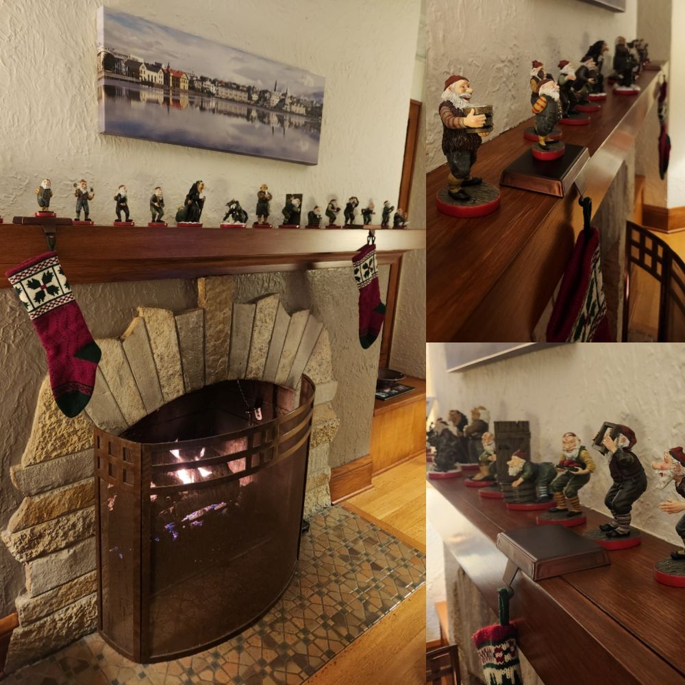As I mentioned yesterday, we have adopted some Icelandic traditions including the Yule Lads. One by one they start arriving on December 12 with the entrance of Stekkjastaur (Sheep-Cote Clod who harasses the sheep) who also departs on Christmas Day. Yesterday the last of the Lads, Kertasníkir (the Candle Beggar) arrived and he will depart on the 6th. I’ve heard them described as “santas,” but to me they are “their own thing.” (Whitefish Bay, Wisconsin, 2025)