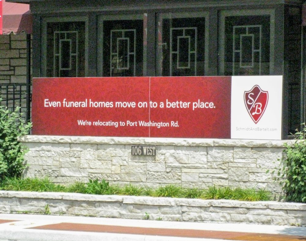 It was a cute way to announce the move off the main street where a Jimmy John’s and Dunkin was needed. (Whitefish Bay, Wisconsin, 2012)