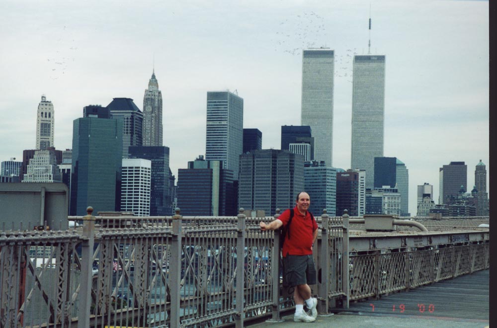 One of my favorite bridge walk is the one over the East River across the Brooklyn Bridge. It opened in 1883 and goes from Brooklyn to lower Manhattan. I marvel at the the bridge towers and the suspension of the auto and pedestrian decks. (New York, New York, 2000)