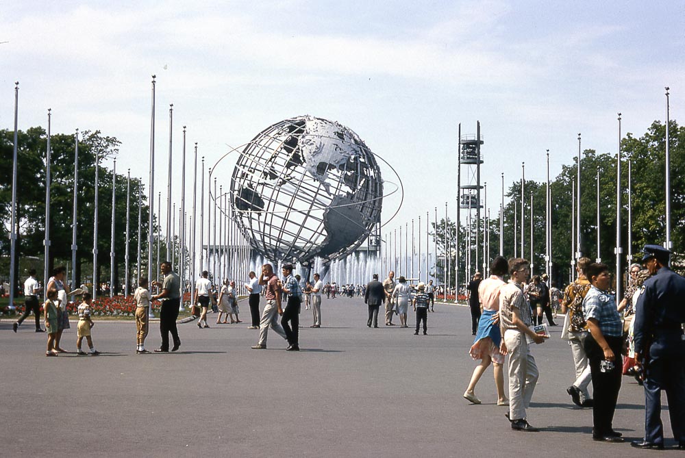 Kathleen’s dad shot this during the 1964 World’s Fair. We found it in a box of old slides. We have it hanging on the wall in the house. What we love is how the people are dressed and are interacting in the photo. (New York, New York 1964)