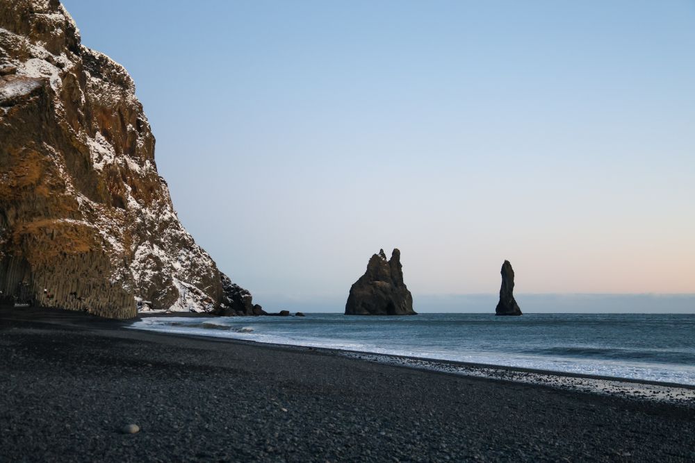 Reynisfjara Beach is one of the most beautiful and interesting black sand beaches in the world. It is also one of the most dangerous. The sun was going down on a cold winter evening and the water was calm. Even though I didn’t expect them, I kept my eye open for sneaker waves. (Vik, Iceland, 2024)