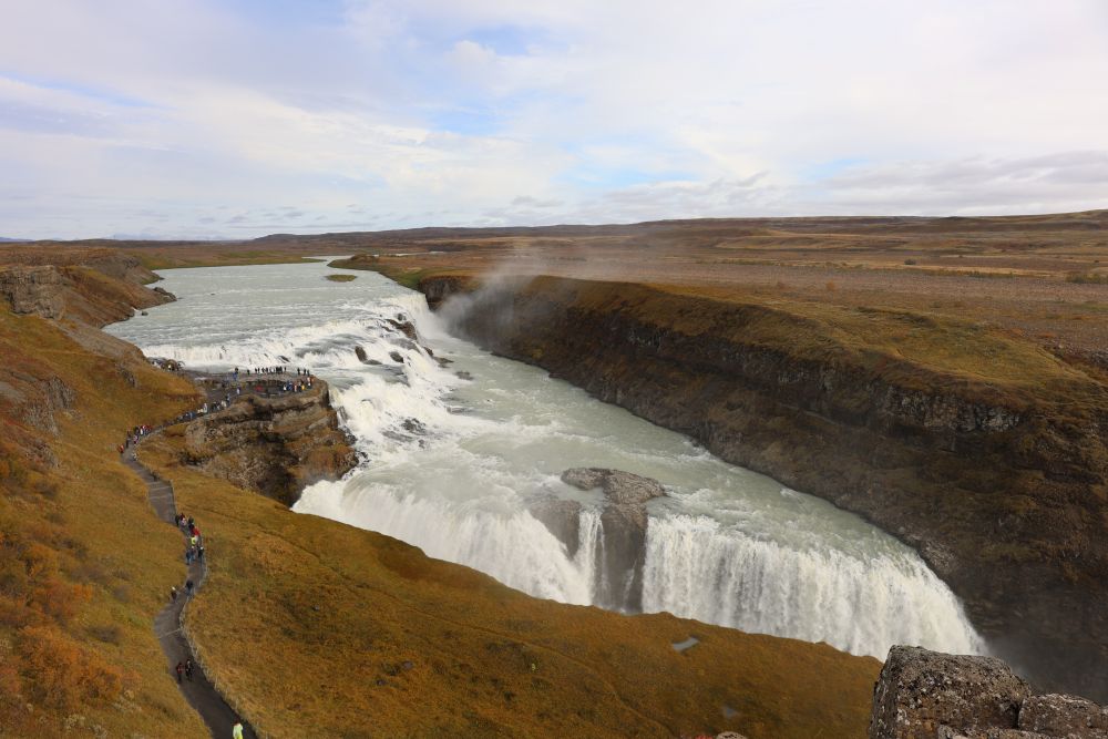If you have been to Iceland, you have probably been here and this is the “classic view.” It’s a day trip from Reykjavik and a stop on the Ring Road. I’ve been there a number of times. This time it was fall and the grasses had turned amber along the Hvítá River. (Gullfoss Falls, Iceland, 2024)
