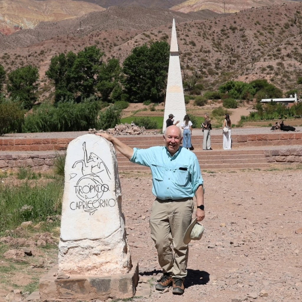 Got to stand at the southern edge of the tropics. For the photo on my desk, I removed the four people behind me from the image. Here, I need to be more real. (near Huacalera in the Quebrada de Humahuaca, Argentina, 2025)