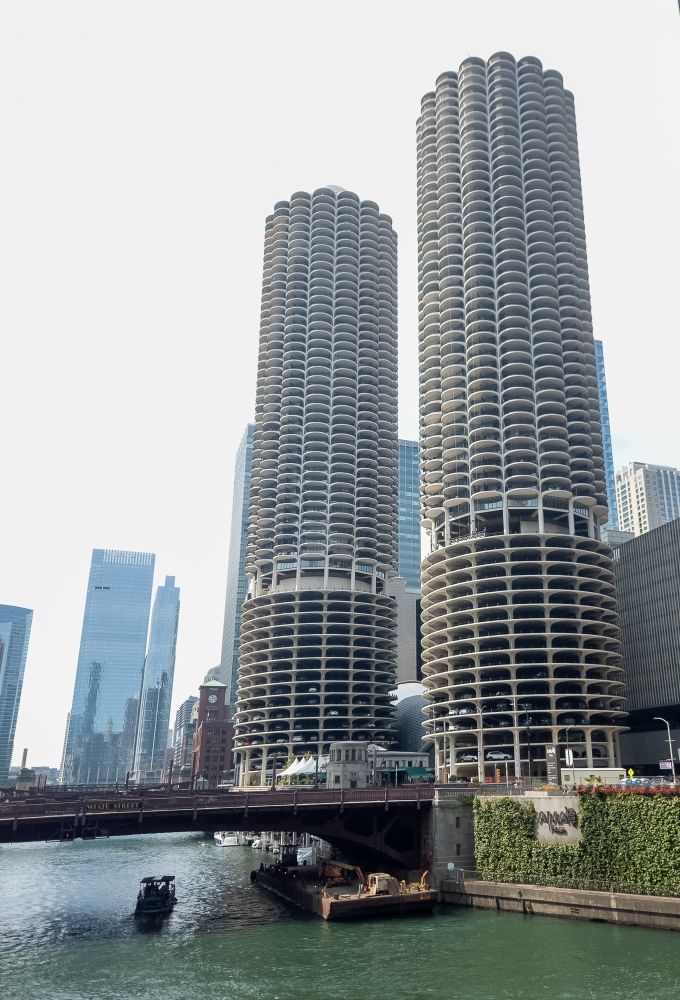 and Bob Newhart. The Marina Towers cut one of the most visually interesting buildings on this section of the Chicago River. As a boy I loved seeing these towers in the opening sequence of the Bob Newhart Show. When I’m in Chicago I always need to take a photo of them. (Chicago, Illinois, 2024)
