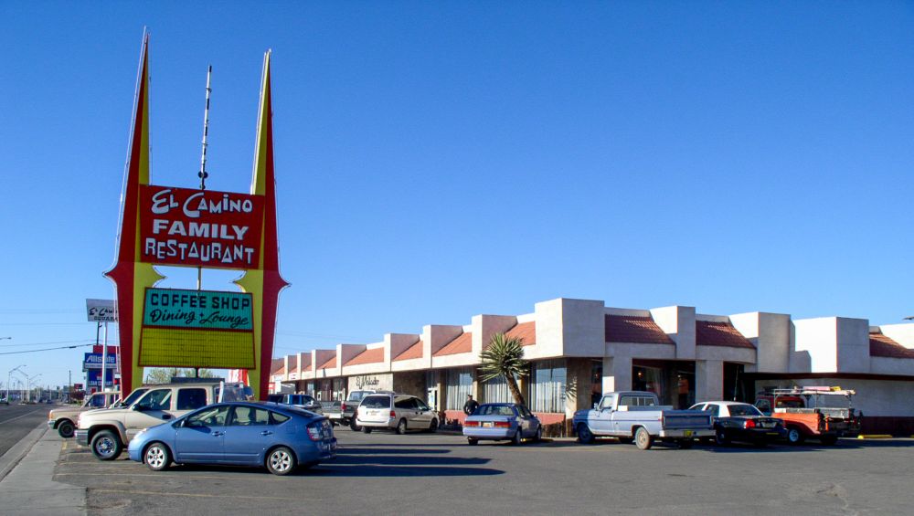 I was in Socorro to visit the Trinity Test Site. I needed a good and early breakfast and this place had all the earmarks of a great place to eat–including the local law enforcement catching their breakfast. I still remember the huevos racheros con salsa verde, (Socorro, New Mexico, 2005)