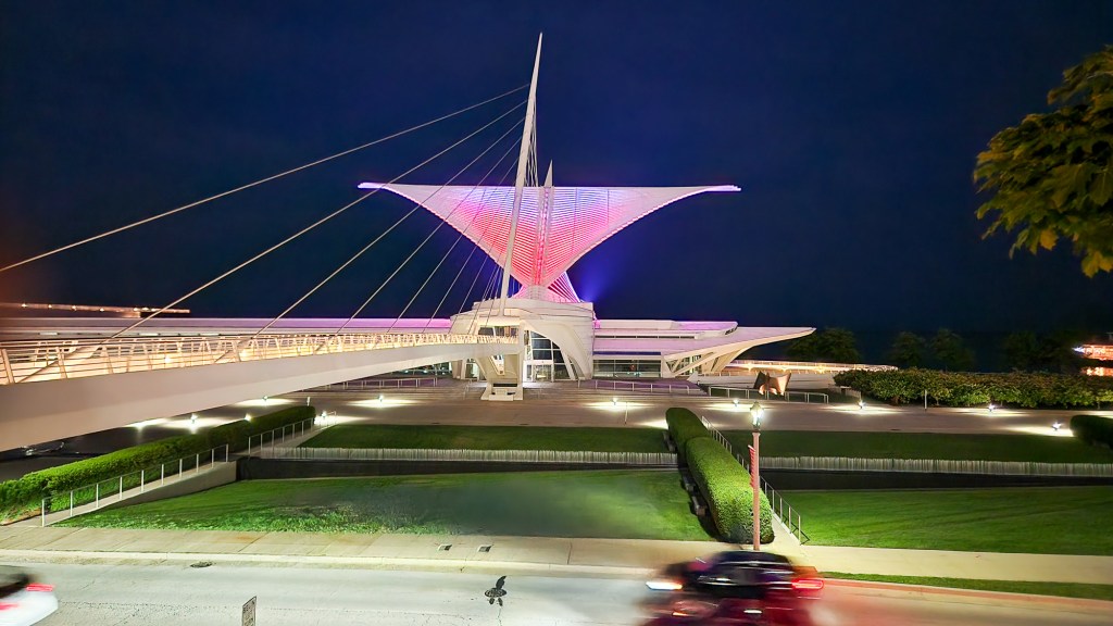 When I was a boy, the Detroit Institute of Arts had a fabulous ad singing that “you’ve got to have art.” I recommend checking the video and the recent remake. I often hum the tune when passing by my hometown art museum. The museum itself is a signature art piece by Santiago Calatrava. I’ve traveled in other countries visiting Calatrava sites and the Milwaukee Art Museum is often mentioned as a signature piece. (Milwaukee, Wisconsin, 2024)